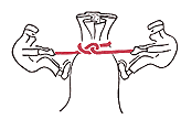 Dieser Unterschied ist allerdings von großer Bedeutung: Die Schlinge hält nur, wenn die Fadenenden in entgegengesetzter Richtung angezogen werden. In der falschen Richtung gezogen, wirft sich die Schlinge. Sie hält nicht, sondern sie gleitet. Die Seeleute kennen und nutzen diese Eigenschaft: Es ist der »Halb-Schlag«.