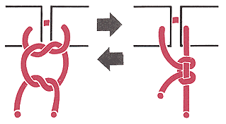 Dies ist der gleiche Knoten, nur durch die Zugrichtung unterschieden! Die erste Schlinge wird ganz normal angelegt